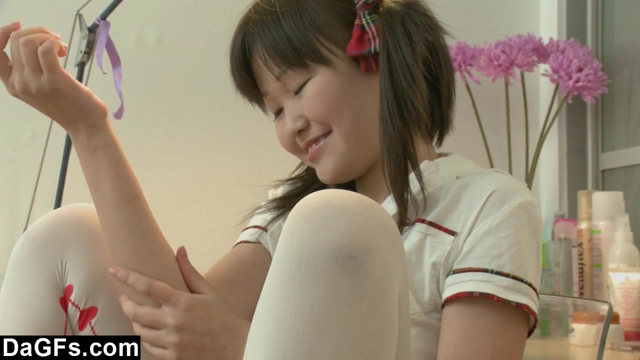 Amazing oriental teen petite plays with dildo by