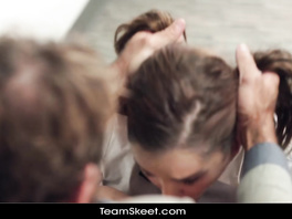 Teen honey with pigtails was skipping classes last week! Today she entered classroom trying to look innocent, but it makes angry teacher even more excited!
