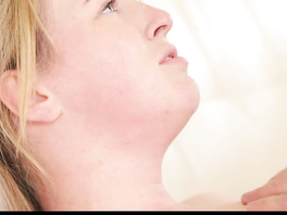Beauty blonde chick is sitting on her knees in front of her fucker friend that is standing with pulled out huge dick and pleases him with smooth deepthroat blowjob before undressing her and passionately fucking on couch. Dude fucks her pussy and strokes clit
