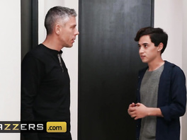 Steaming hot and excitingly slender shaped brunette milf is doing tight deepthroat blowjob to teen guy and then having her shaved pussy and tight asshole pleasantly fucked by two dudes and then pleasuring hot double penetration mmf threesome fuck