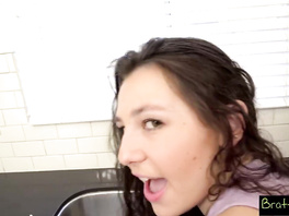 Here we have a very good-looking brunette that gets stuck in the kitchen sink. Her stepbrother discovers her sexting habits and fucks her silly later on.